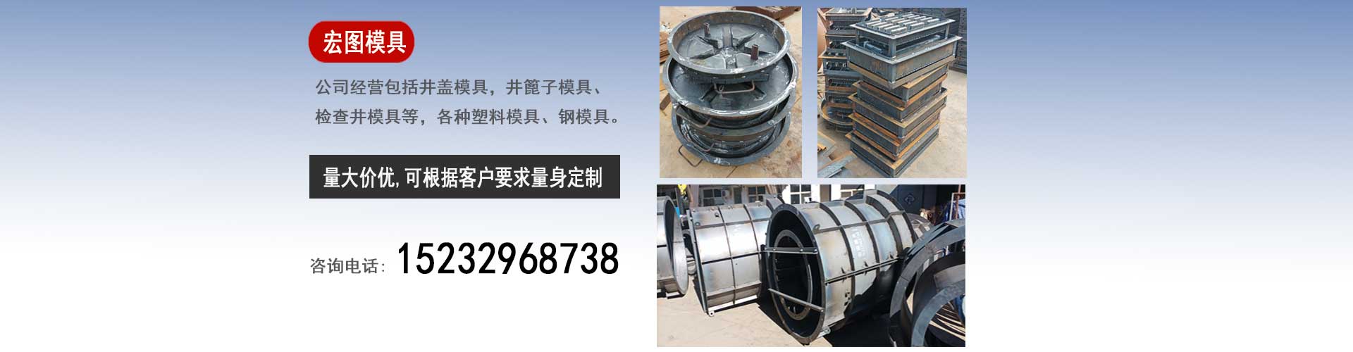 保定宏圖模具科技有限公司專業(yè)生產(chǎn)井蓋模具,檢查井模具,隔離墩模具質(zhì)優(yōu)價廉。我們生產(chǎn)的模具產(chǎn)品質(zhì)量強勁、經(jīng)久耐用。是您值得信任的選擇。我們堅持以客戶第一位原則。以客戶需求為我們的發(fā)展方向。不斷地提高擴大我們的生產(chǎn)范圍、生產(chǎn)能力,滿足客戶的對模具的一切要求,隨時保持與市場的無縫鏈接。真正的做到市場上的“需要我們有什么、客戶需要什么我們滿足什么”。我廠生產(chǎn)的模具具有光亮度高、韌性強、不變形、易脫模、破損率低等特點,產(chǎn)品銷往全國各地,并受到了廠家的青睞和好評。